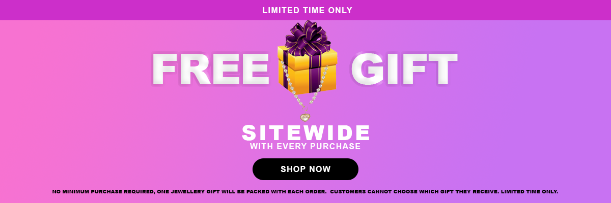 Free gift with every order, no minimum spend. Receive one of these jewelry pieces.