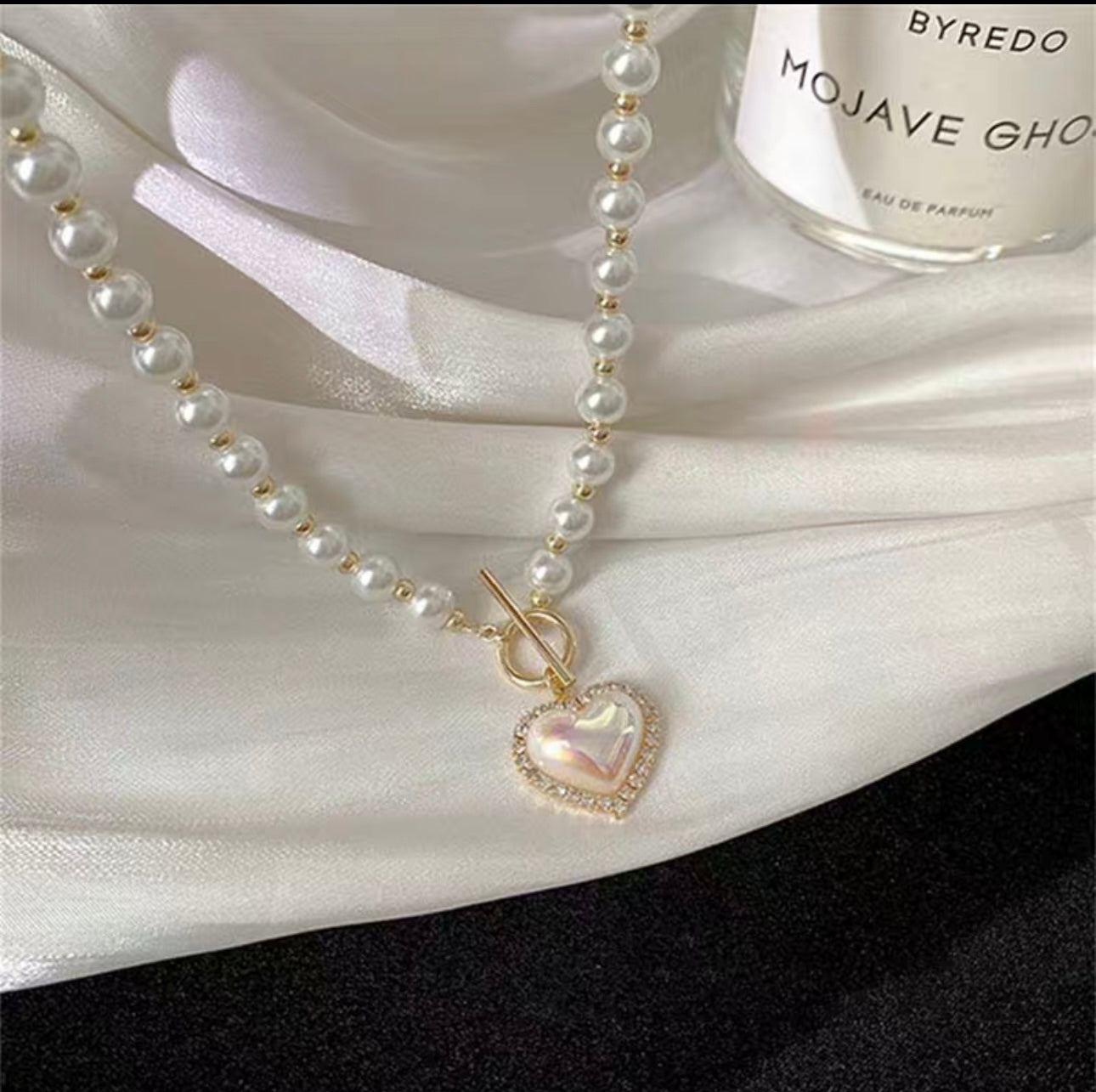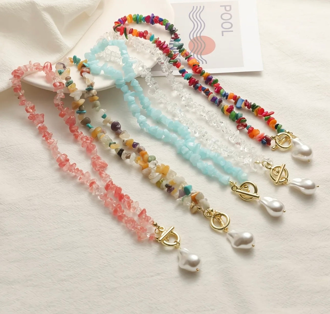 Pearl Pendant Stone Necklace in Blue, Pink or White